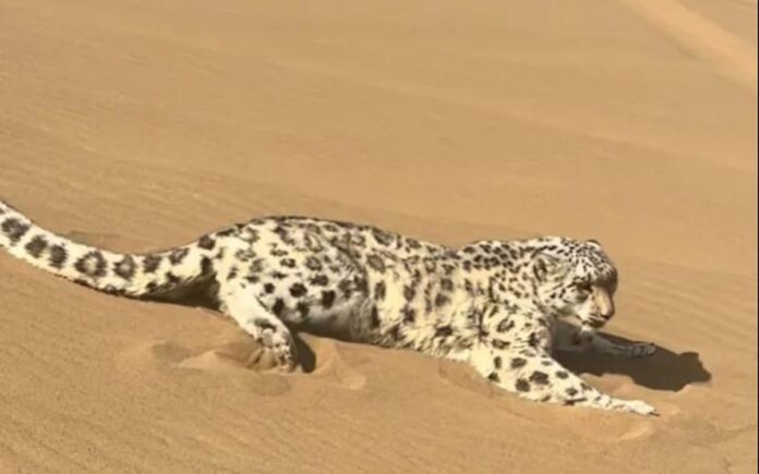 Một sự kiện hy hữu đã xảy ra vào trưa ngày 21/3/2026 tại khu vực sa mạc Kumtag, thuộc huyện Thiện Thiện, thành phố Thổ Lỗ Phiên, Tân Cương, Trung Quốc, khi một nhóm du khách trong chuyến tham quan bất ngờ phát hiện một cá thể báo tuyết đang xuất hiện giữa những đụn cát mênh mông. Phát hiện này nhanh chóng gây chấn động không chỉ với những người có mặt tại hiện trường mà còn lan rộng trên mạng xã hội, khi nhiều người ban đầu không tin đây là sự thật.