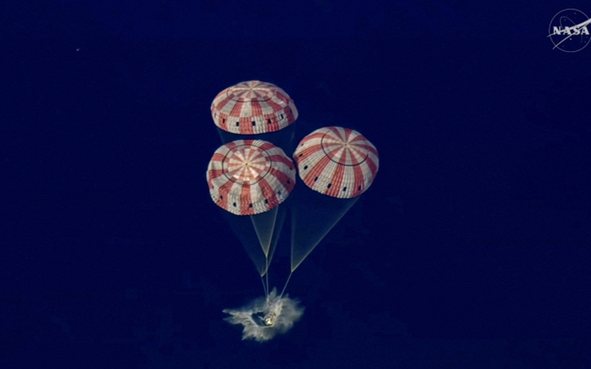 Khoang tàu Orion của sứ mệnh Artemis II đáp xuống Thái Bình Dương – Ảnh chụp màn hình.
