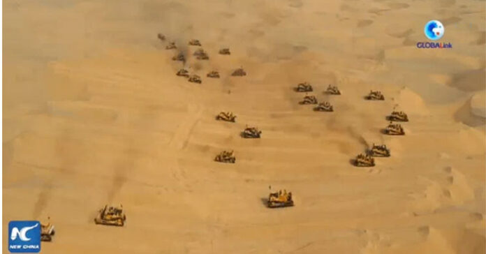 Xem cách Trung Quốc xây xa lộ xuyên sa mạc bất chấp bão cát